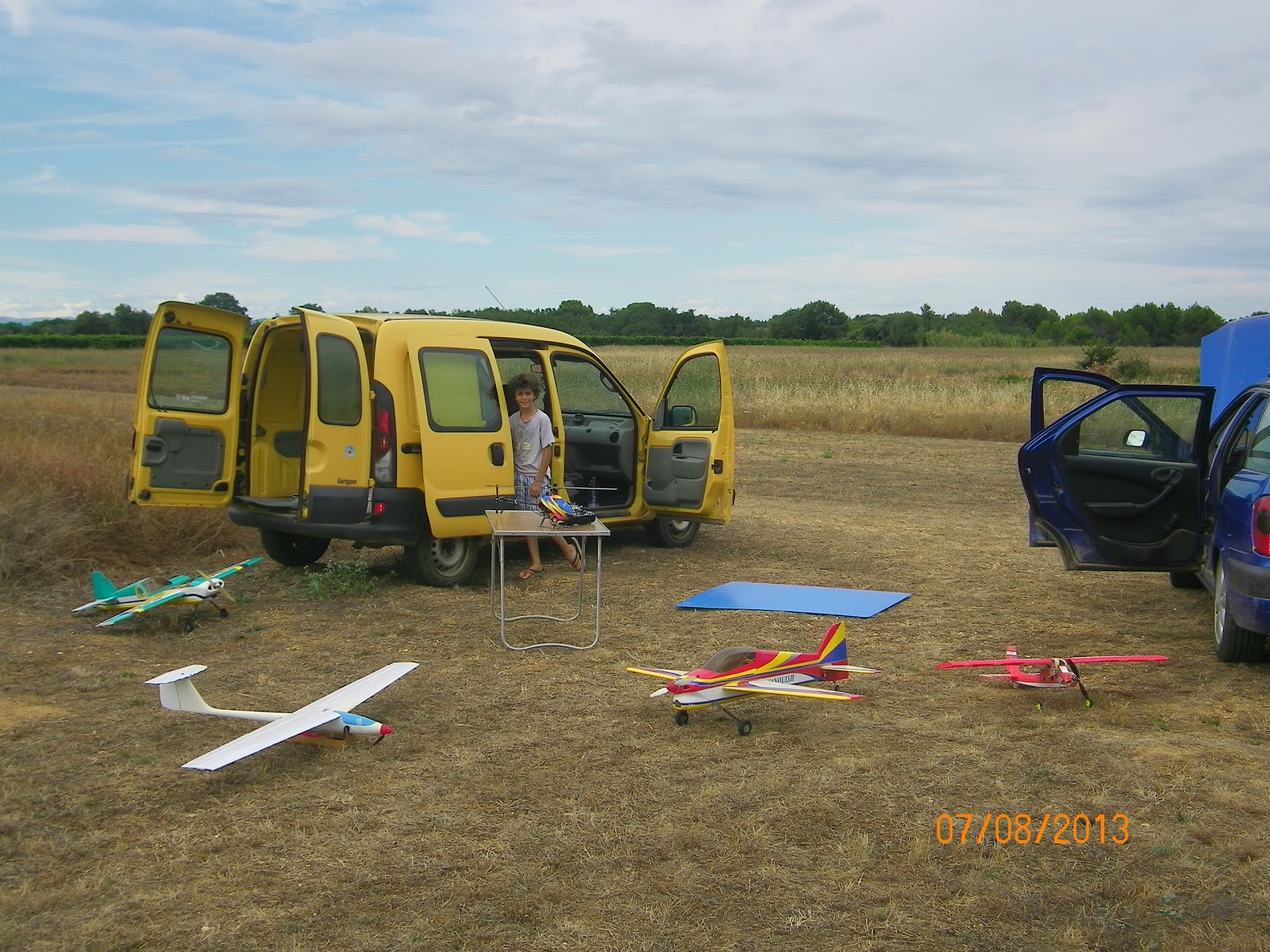 Gaston a enchainé les tours de pistes avec son Polycub, Antoine a varié les plaisirs avec motoplaneur, voltige avion et rééducation avec son CopterX 450, moi comme d'hab des passages tranches et dos plus ou moins réussis avec mon Vanquish