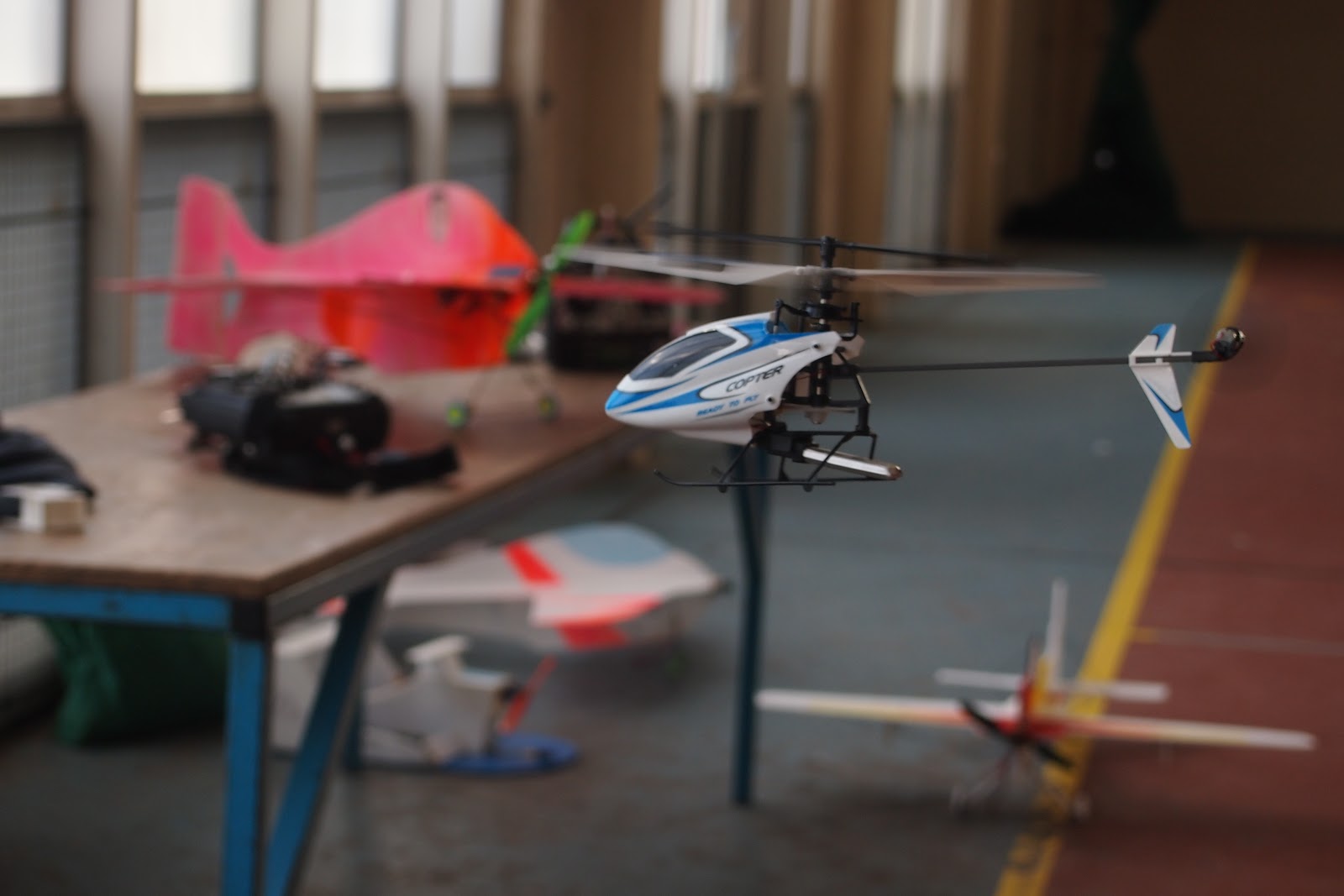 Petit retour en arrière : c'est au mois de juin que nous avons rencontré Claude Bastier, adjoint à la jeunesse et sport à Servian. Nous lui avons présenté le club encore juvénile, nos activités en cours, nos projets, dont la pratique de l'indoor. Une petite vidéo youtube lui a permis d'apprécier concrètement l’intérêt de l'indoor et de dissiper toute crainte quant à l'éventuelle dangerosité des modèles. Apparemment convaincu de l’intérêt de cette association sur Servian, il s'est engagé (après confirmation auprès de notre maire Mr Christiophe Thomas) à nous réserver le créneau encore libre du dimanche de la salle polyvalente. Seule restriction : laisser la place lors des quelques matchs dominicaux de volley ou basket (mais il reste l'après midi!!)
